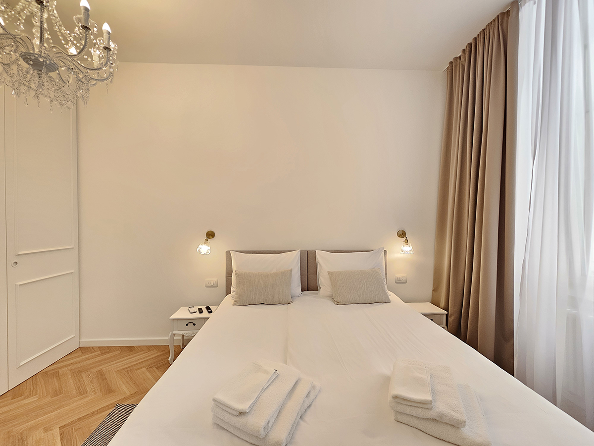 The apartment is equipped with bed linen, towels, iron, ironing board and hairdryer, CATV, free Wi-Fi internet access and air conditioning.