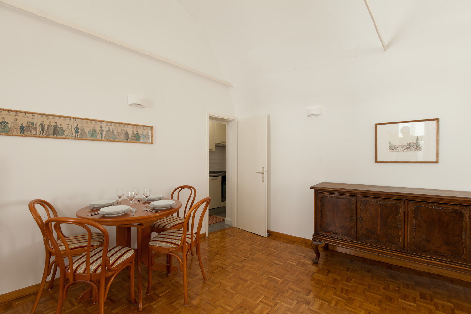 The one-bedroom, recently completely renovated apartment, is located on the third floor and is accessible by elevator. The apartment layout faces inside the building that is why the apartment is a quiet corner in the middle of a city hustle. The rooms are connected with a long, glazed hallway overlooking the inner courtyard. Smaller bathroom has shower, toilet and sink. In the central living room with a dining area for four people there is also a comfortable sofa which can serve also as an additional bed for 1 person (130 x 190 cm), an LCD TV and a large antique desk. A small but modern kitchen, to which we enter from the central area, is fully equipped with refrigerator, stove with a glass ceramic hob, oven, dishwasher, washing machine, dishwasher and utensils. In the bedroom there is a king size bed (180 x 200 cm). The apartment is provided with towels, linen, iron with ironing board, hair dryer, CATV and Wi-Fi internet access.