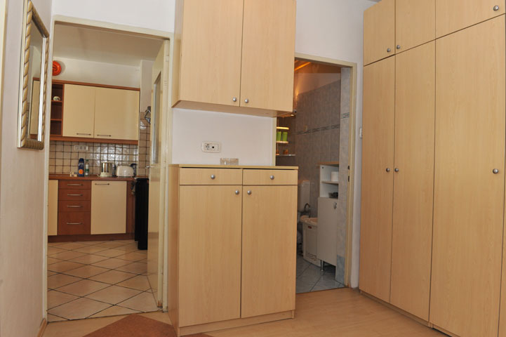 This apartment has a bedroom with bed (140 x 200 cm) together with living area with sofa, which falls down to a bed (120 x 200 cm), writing desk. In smaller bedroom there is single bed and writing desk. Kitchen is equipped with stove, oven, toaster, wash and dryer machine and big refrigerator, in the bathroom there is a bath tub. It is fully equipped with cooking utensils, cutlery, towels, linen, iron, ironing board, hair dryer, telephone, CATV, free broadband wired and wireless (Wi-Fi) internet access. There is a public payable parking space in front of the building.