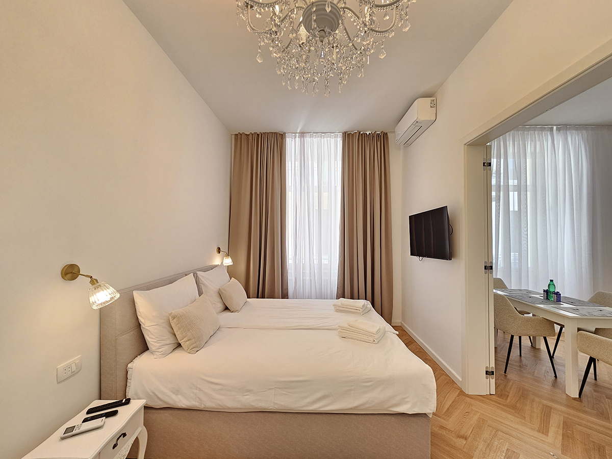 L'appartamento è dotato di biancheria da letto, asciugamani, ferro e asse da stiro e asciugacapelli, CATV, connessione internet Wi-Fi gratuita e aria condizionata.