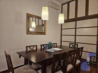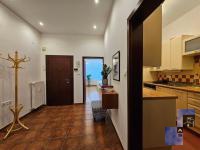 Ванная комната оснащена ванной, туалетом, биде, двумя умывальниками и стиральной машиной. Просторный коридор соединяет все помещения, из него есть выход в дополнительный туалет и кладовую.
