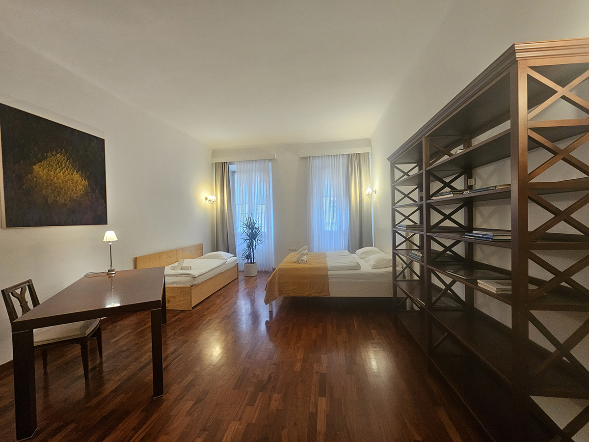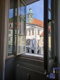 Просторный и светлый апартамент в винтажном стиле с двумя спальнями в центре Старого города Любляны, рядом с Ратушей. Комфорт и отличное расположение.